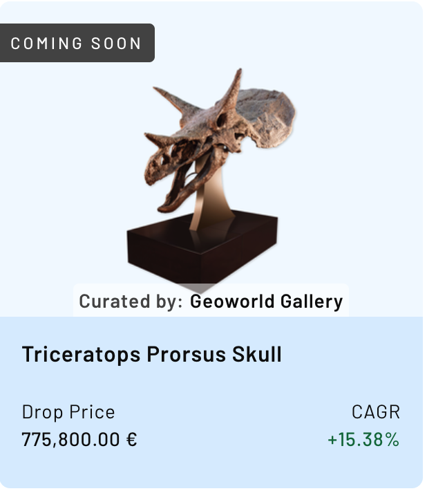 The multi-million-euro barrier is removed through Fractional Dinosaur Ownership. We tokenized a 67-million-year-old Triceratops skull with museum-grade preservation (around 70% original bone volume).